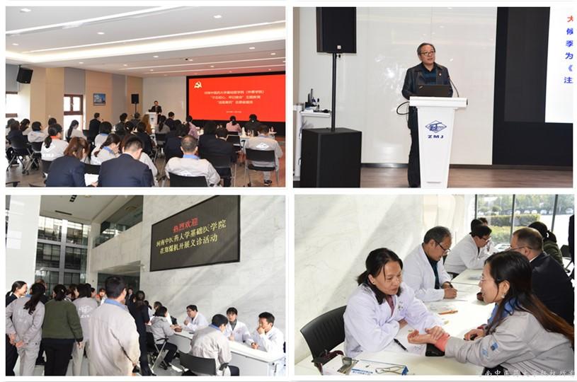 在习近平总书记视察郑州煤矿机械集团股份有限公司(以下简称“郑煤机集团”)和对中医药工作作出重要指示之际,为深入推进“不忘初心、牢记使命”主题教育,2019年11月19日,基础医学院党委书记禄保平带领中医诊断与方剂学联合党支部、人体解剖与组织胚胎学党支部与研究生第一、第三党支部党员代表赴郑煤机集团开展“送医惠民”志愿服务活动。