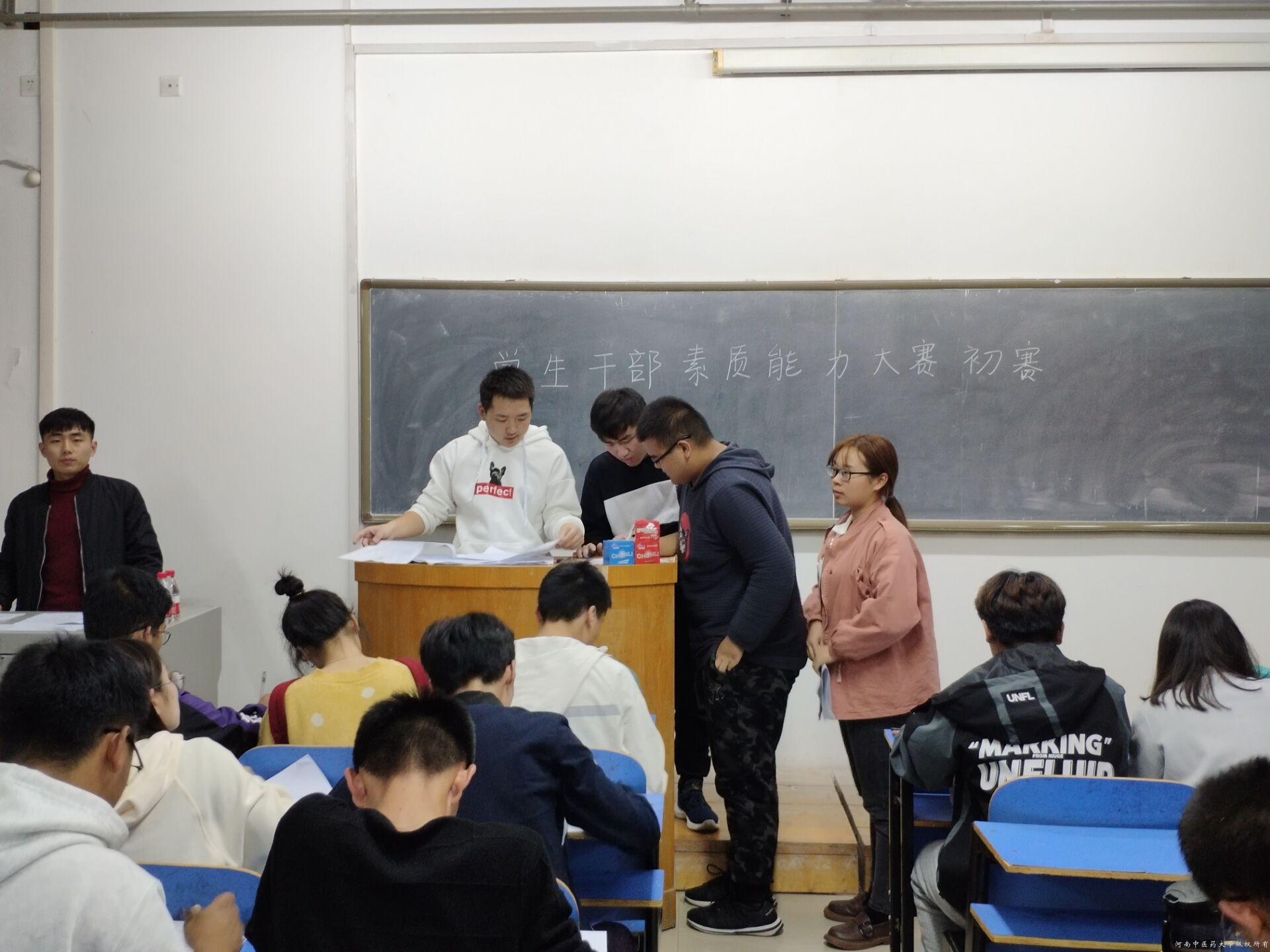 为加强学生干部队伍建设,切实提高学生干部素质能力,更好地服务广大师生,我院分团委制定《基础医学院学生干部管理条例》《学生干部考核体系》等规章制度,开展系列讲座、培训和素质拓展,以期全方位提高学生干部综合素质。为了考察前期活动效果,我院于10月23日晚在A433和A424举办了学生干部素质能力大赛初赛(笔试)。