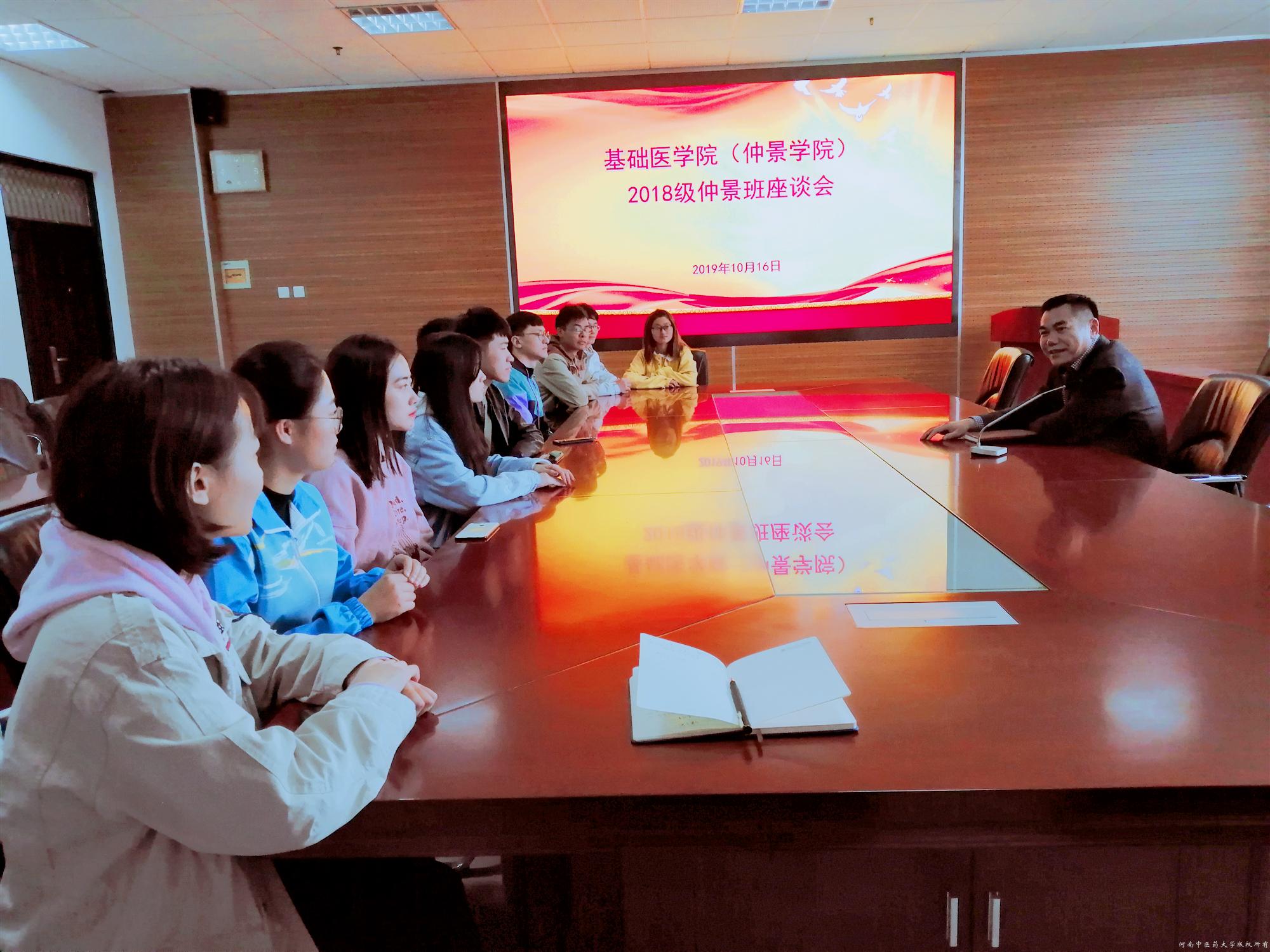 为推动2018级仲景学术传承班班级建设,增强班级管理、学风引领工作的针对性和实效性,10月16日上午基础医学院院长、2018级仲景班班主任李根林教授在学院会议室召开学生座谈会。座谈会由辅导员吴明明老师主持。