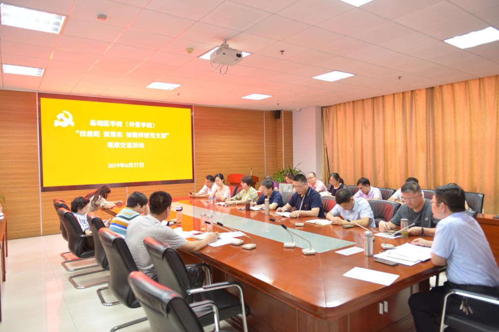 为做实“两化一创”第一阶段达标引领工程,按照学校党委组织部《关于开展基层党支部观摩交流活动的通知》要求,2019年6月27日下午,基础医学院在教学楼A447举办“找差距 抓落实 创建样板党支部”观摩交流活动。学院党委委员、全体支部书记及支部委员参加活动,活动由学院党委副书记徐里主持。