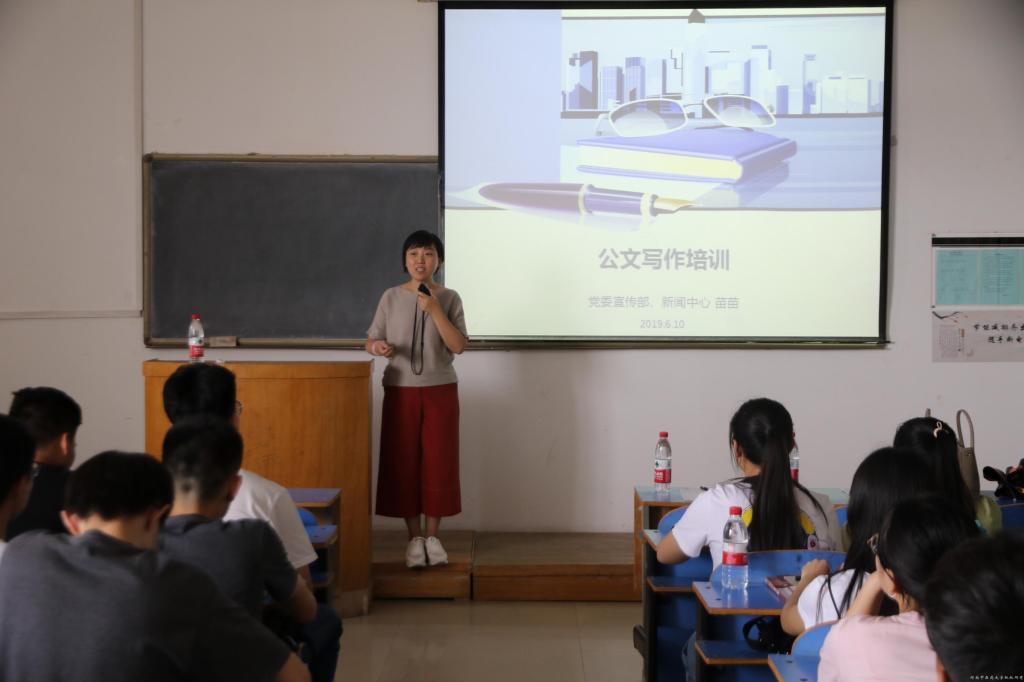 为提升学生干部的公文写作水平,6月10日中午,基础医学院在教学楼A441开展学生干部公文写作培训。本次培训特邀校党委宣传部宣传科副科长苗苗老师担任主讲嘉宾。基础医学院分团委书记李倩老师以及第十三届学生会全体成员参加此次会议。
