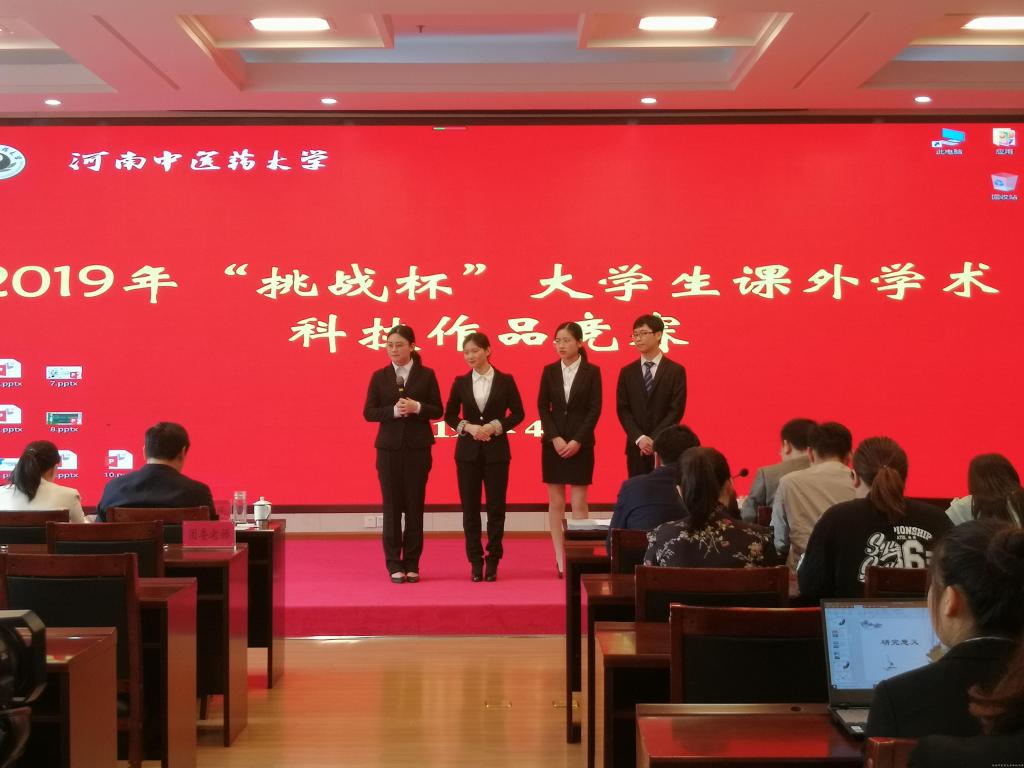 (图文:李倩)4月24日上午,2019年“挑战杯”大学生课外学术科技作品竞赛校赛终审答辩在图书馆第二报告厅举行,我院2016级仲景班张越阳团队的作品《靶向治疗贫困——基于中医“治未病”视角下对河南农村居民因病致贫(返贫)的研究与思考》以及2015级仲景班黄萍萍团队的作品《中医药在国家级贫困县乡镇医疗单位防治慢性病的现状研究——以河南省虞城县为例》从校级近百件作品中脱颖而出,最终进入校级终审答辩。其中张越阳同学的团队获得92.33的高分,获得第一名,这也是我院继2017年“挑战杯”大学生课外学术科技作品竞赛后又一次取得的优异成绩。