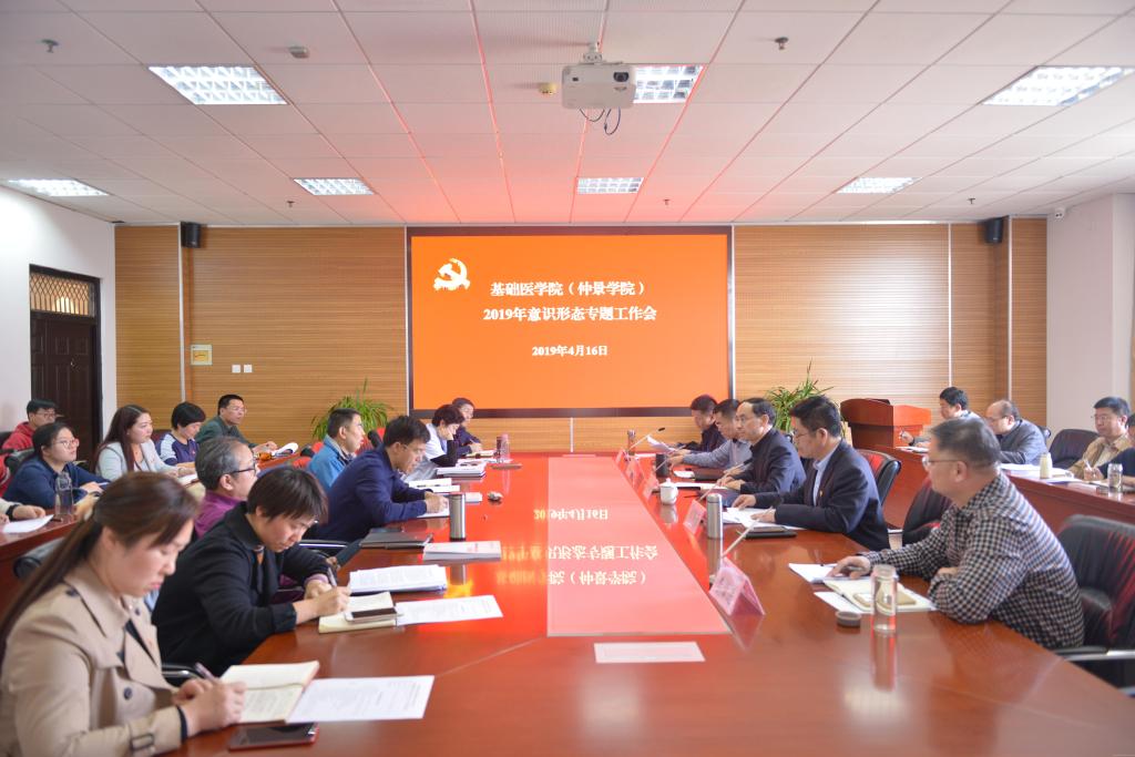 (文/刘颖 图/史占江)4月16日下午,基础医学院在教学楼A447召开2019年意识形态专题工作会议。校党委委员、工会主席张加民同志出席会议并讲话,基础医学院在郑领导班子成员、全体支部书记、科室主任及辅导员参加会议,会议由学院院长李根林主持。