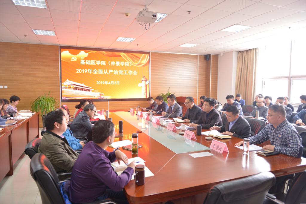 会上,学院党委纪检委员、副院长李肇进传达了上级全面从严治党有关会议精神;学院党委书记禄保平总结了2018年度基础医学院全面从严治党工作并安排部署2019年度全面从严治党工作任务;各支部书记、科室主任向党委书记禄保平递交《2019年度全面从严治党责任书》。