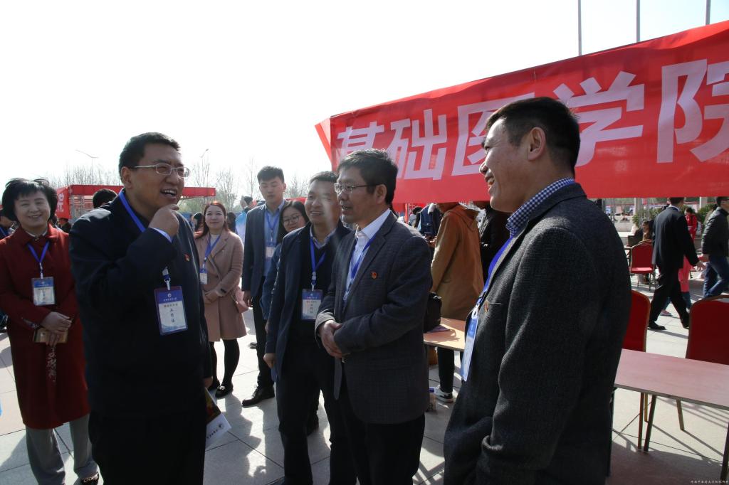 上午校党委书记别荣海、校长许二平等领导亲临就业双选会指导工作,在听取基础医学院2019年就业工作汇报后,充分肯定了我院的就业指导和教育管理工作,同时希望我院毕业生能够把握时代新形势,树立正确就业观,找到真正适合自己的职业。基础医学院党政班子高度重视用人单位需求,特别是与我院签约的实习就业基地,通过现场走访交流,在了解他们的用人需求的同时,及时宣传我院的专业建设和人才培养情况,并对现场投简历的同学们提出希望和要求。