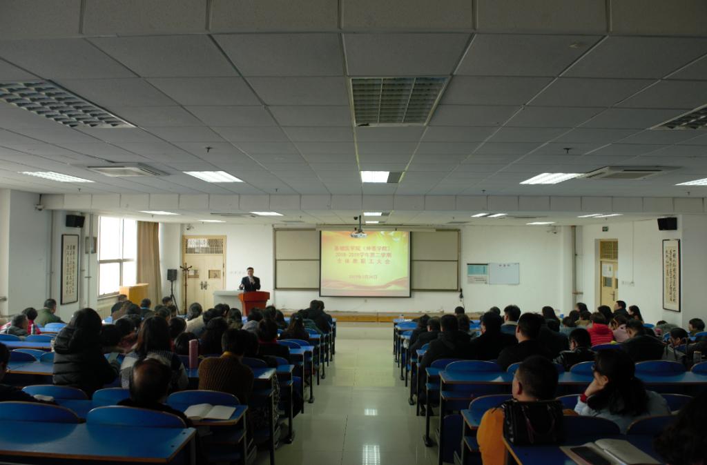2019年2月24日下午,基础医学院在四楼阶梯教室召开新学期工作会议。全院教职工参加了此次会议,会议由党委副书记徐里主持。