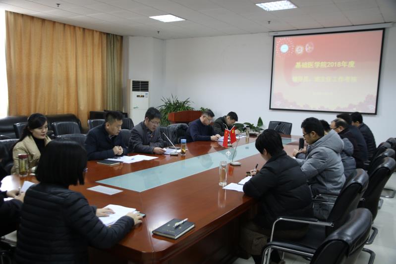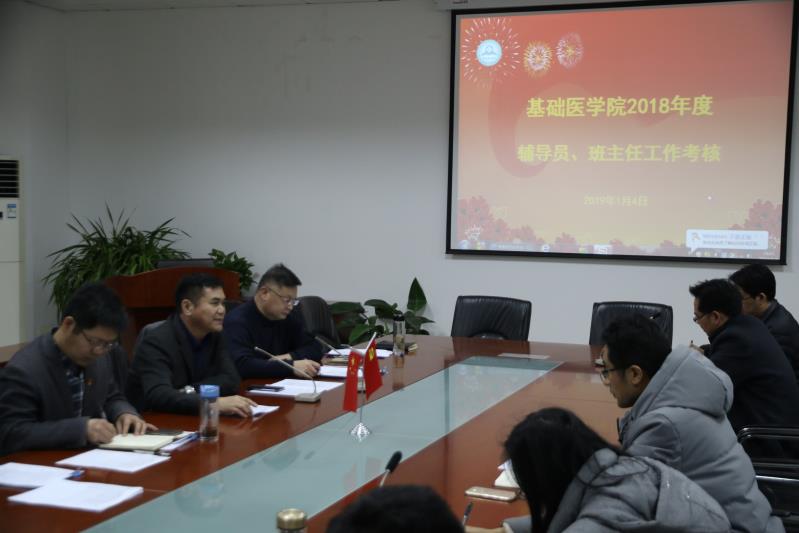 根据校党委学工部统一部署,1月4日下午,基础医学院在四楼会议室举行2018年度辅导员、班主任工作考核会议。会议由基础医学院党委书记禄保平主持,学院学生工作领导小组、全体辅导员、全体班主任参加了会议。