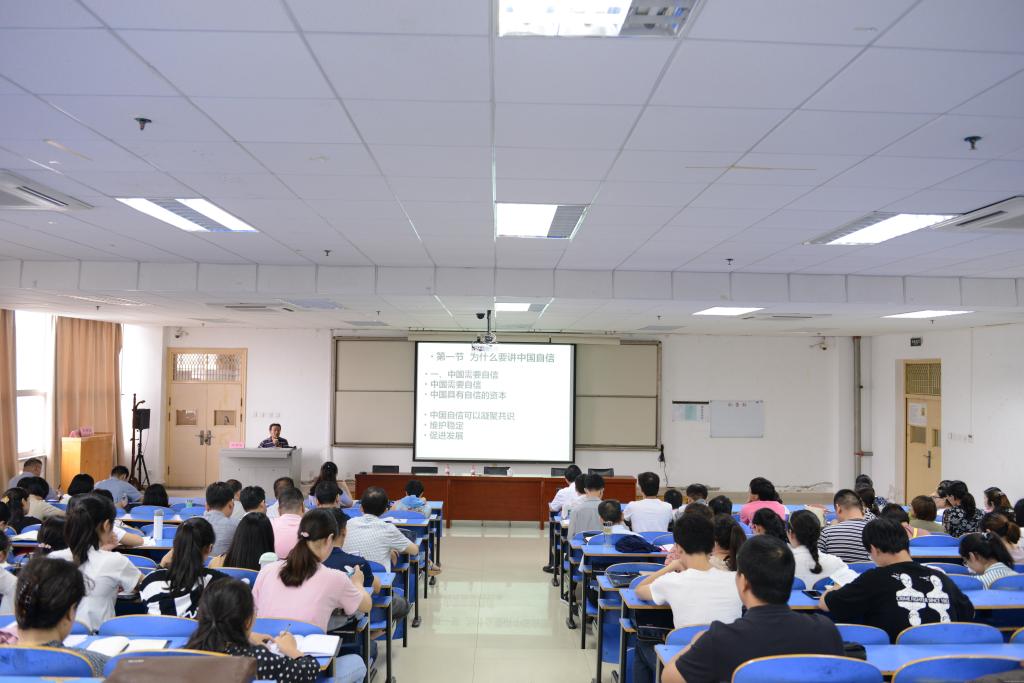 2018年8月31日下午,全国高校思想政治理论课教学能手、郑州大学马克思主义学院形势与政策教研室主任禄德安博士应邀来我校,在教学大楼A区四楼阶梯教室为我校基础医学院全体师生作了题为《比较视野下的“四个自信”》的专题报告。