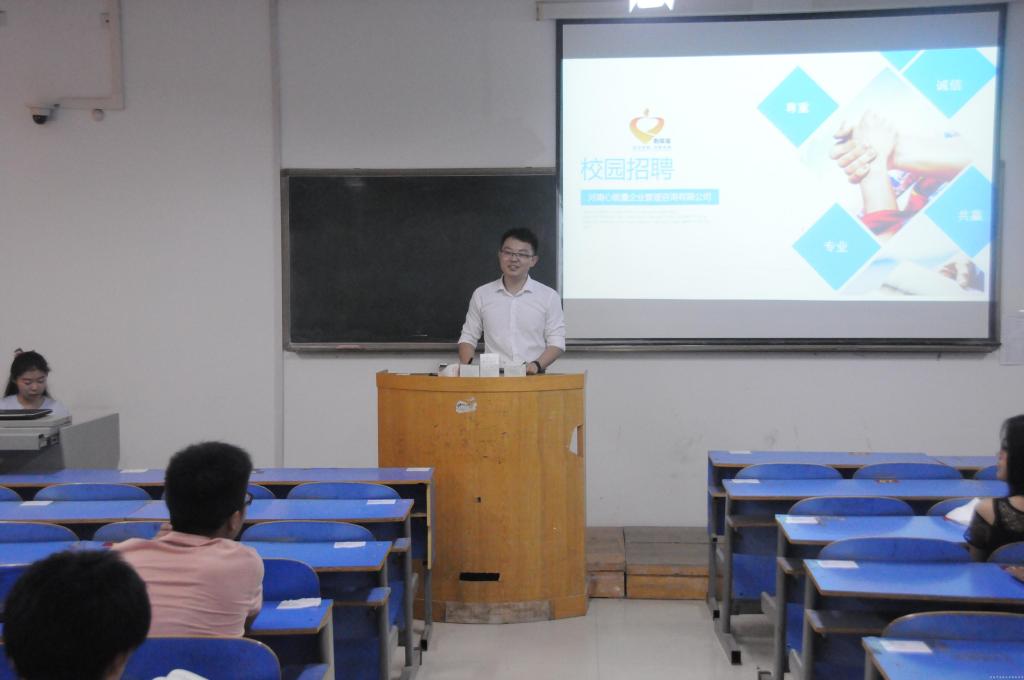 招聘会伊始,赵总经理首先介绍心能量教育集团是一家采用“中国文化解决中国人自己问题”的综合性服务机构,主要以家庭需求为主线,打造以心理学、幸福学为导向的学习、咨询、成长、就业平台。随后,赵经理又对其集团背景、集团文化、集团现状及战略部署等方面为同学们做出了详细介绍,并就将要招聘的岗位向与会的学生做了分析讲解。到场同学积极与招聘单位沟通,严肃亦不失活跃的氛围,使得本次招聘会效果显著。宣讲会后,学工办刘旭初老师针对此次招聘会鼓励在场的应届毕业生积极咨询了解企业相关情况,建议同学们结合自身专业方向与相关领域,及时调整好就业心态把握机会、认准目标,争取以最佳的状态迎接新的挑战。
