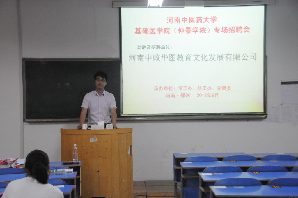 为了切实做好2018届毕业生就业指导工作,大力构建毕业生与用人单位的交流平台。6月11日下午,受基础医学院邀请,华图教育公司在A218为我院毕业生进行专场招聘,学院学工办主任刘旭初、研究生兼职辅导员高鹏及部分应届、非应届的本科生、研究生参加了此次招聘会。