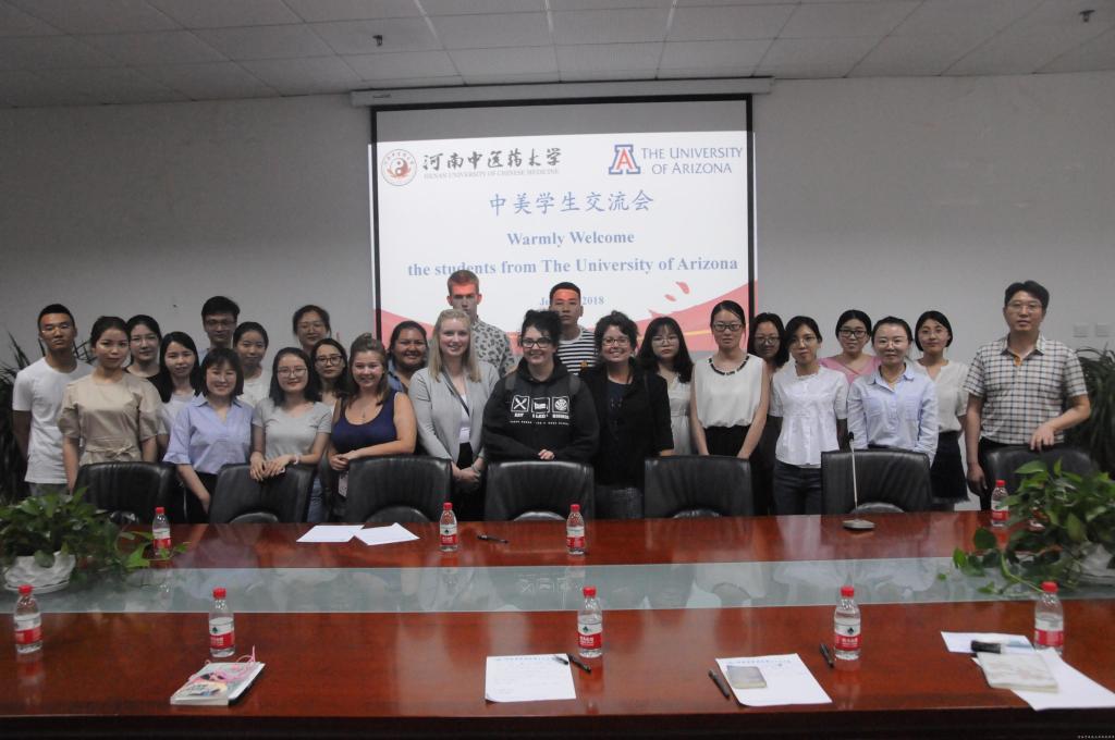 为拓宽我院学生国际化视野,6月1日晚,基础医学院特邀来自美国亚利桑那大学公共卫生学院的七名学生与我院预防医学专业学生代表在四楼会议室举办了别具一格的“中美学生交流会”。基础医学院党委副书记徐里、预防医学学科主任闫国立副教授、学工办主任刘旭初以及本科生代表二十余人参加了此次交流会。