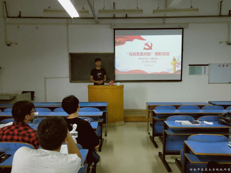 为不断加强全体学生党员的思想教育,汲取马克思主义的真理力量,探究马克思主义的当代价值和持久魅力,帮助其更好地理解马克思主义的内涵。5月20日下午,在马克思诞辰200周年之际,基础医学院本科生第二党支部在A441教室举办了《马克思是对的》主题观影活动,党支部书记李倩老师和本科生第二党支部全体学生党员参加此次主题党日活动。