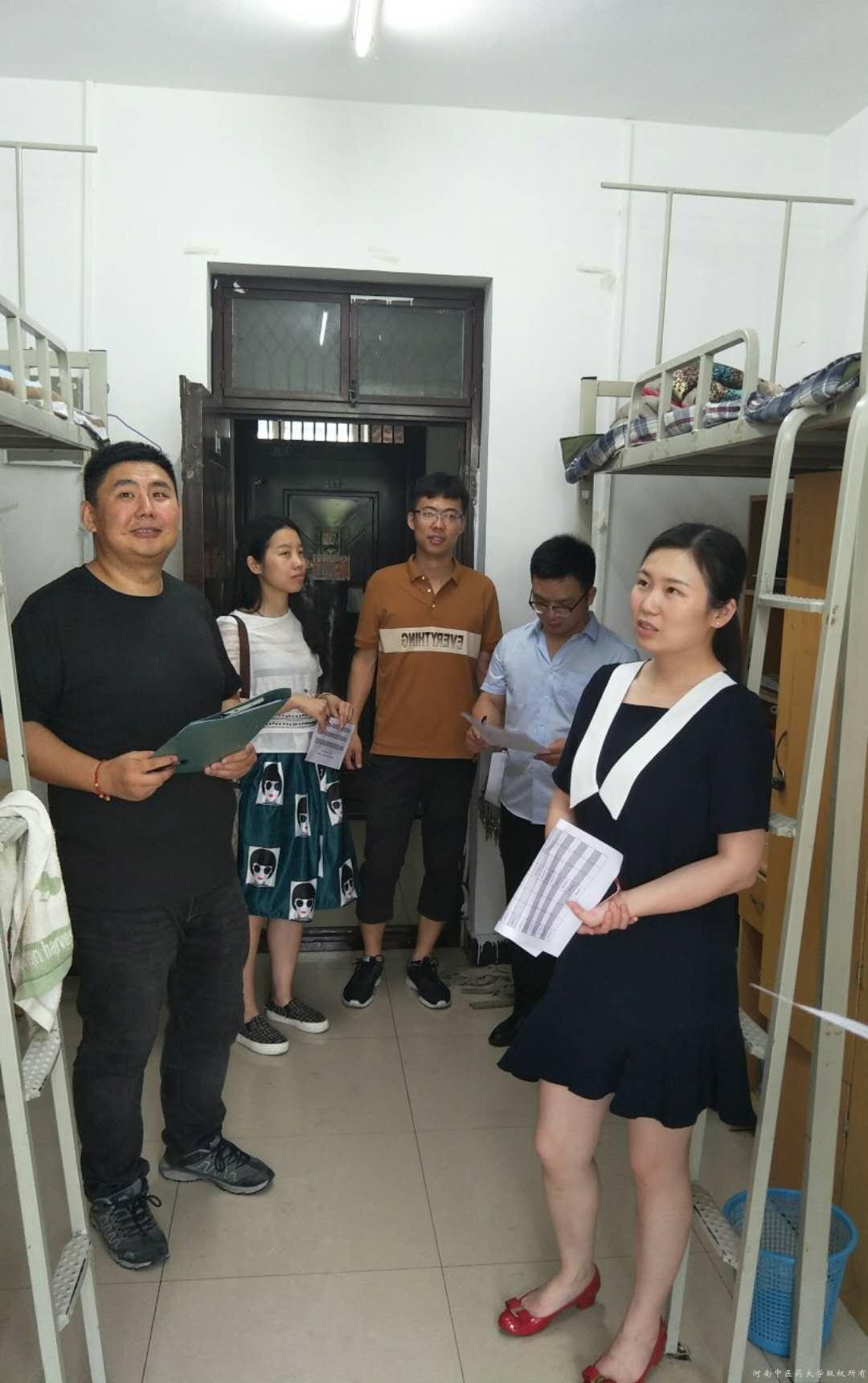 2018年05月15日上午,由基础医学院学工办刘旭初主任、研究生兼职辅导员高鹏、研究生会主要干部和各班生活委员组成的检查小组,针对基础医学院的28个研究生宿舍的卫生情况、用电安全和文化建设做了一次详细的检查。