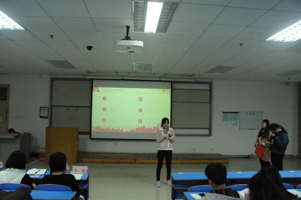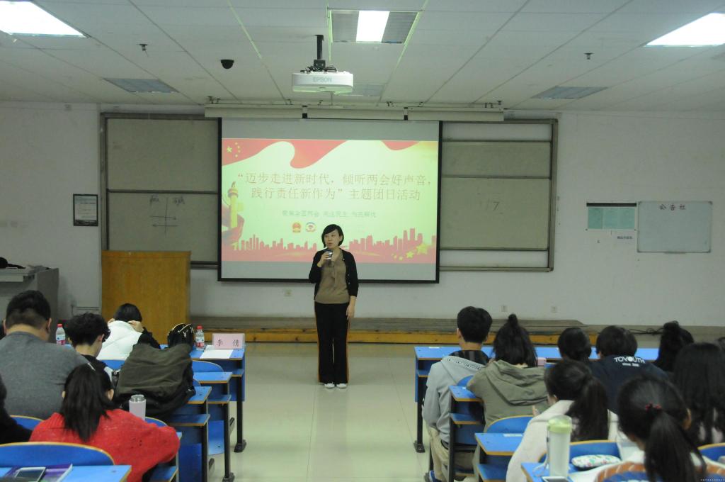 活动伊始,李倩老师作开场讲话,她对学生干部提出三点希望:一是勤于学习,不断提高自身理论素质;二是严于律己,不断强化自身政治素质;三是勇于实践,不断积累自身工作经验。活动从“两会基本概况”、“图文解说政府工作报告”、“2018年两会热词解读”、“倾听两会好声音”、 “我为两会提案献策”五个部分学习两会的基本内容,活动中还设有小问答环节,充分调动同学们的积极性,活跃现场气氛。在第五部分模拟两会-我为两会提案献策的发言环节中,各个院系代表不同阶层针对社会上的热点问题发表自己的看法,提出合理的建议和解决方案,代表们精彩的发言,引起阵阵掌声,把现场气氛推向高潮。