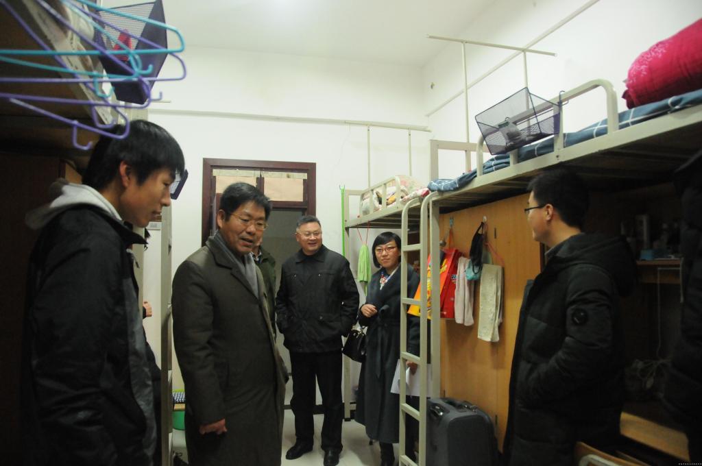 走访过程中,院领导仔细询问各个班级的学生返校情况以及实习生的到岗情况,认真查看学生宿舍的设施及内务,询问同学们假期生活、家庭状况,假期社会实践情况以及新学期的打算,叮嘱同学们在寝室生活中一定要注意人身财产安全,杜绝使用各类违章电器,养成良好的生活习惯;勉励大家勤奋学习,加强锻炼,努力成为一名有社会责任感、有志向、有才干、有情怀的大学生。领导老师们也非常关心少数民族学生在校的生活、学习和思想动态,并与我院每一个少数民族学生进行了亲切交谈,了解情况,嘱咐他们在学习中多向老师请教,在生活中有困难多与辅导员沟通,积极参加课外活动,全面提升个人素质和能力。走访后,禄书记向辅导员老师提出了要求:一是及时进班召开班会,明确新学期课程任务,进一步强调安全与纪律要求,尽快引导学生进入学习状态,二是增强安全意识和纪律意识,从大局出发,增强个人的政治敏感性,关注特殊学生群体,保证学生群体的安全稳定;三是要结合校、院工作要点,明确本学期学生工作思路,认真策划好全年的学生工作,共同努力构建一个文明、和谐、稳定的校园氛围。