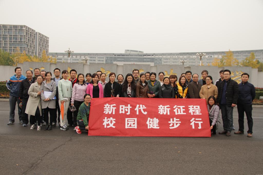 金秋十月,丹桂飘香。党的十九大胜利闭幕,中国正迈向新的时代,新的征程,为贯彻落实党的十九大精神,丰富教职工业余生活,鼓励同志们养成健康的生活方式和健身习惯,10月31日下午,基础医学院组织教职工开展了“新时代,新征程,校园健步行”活动。