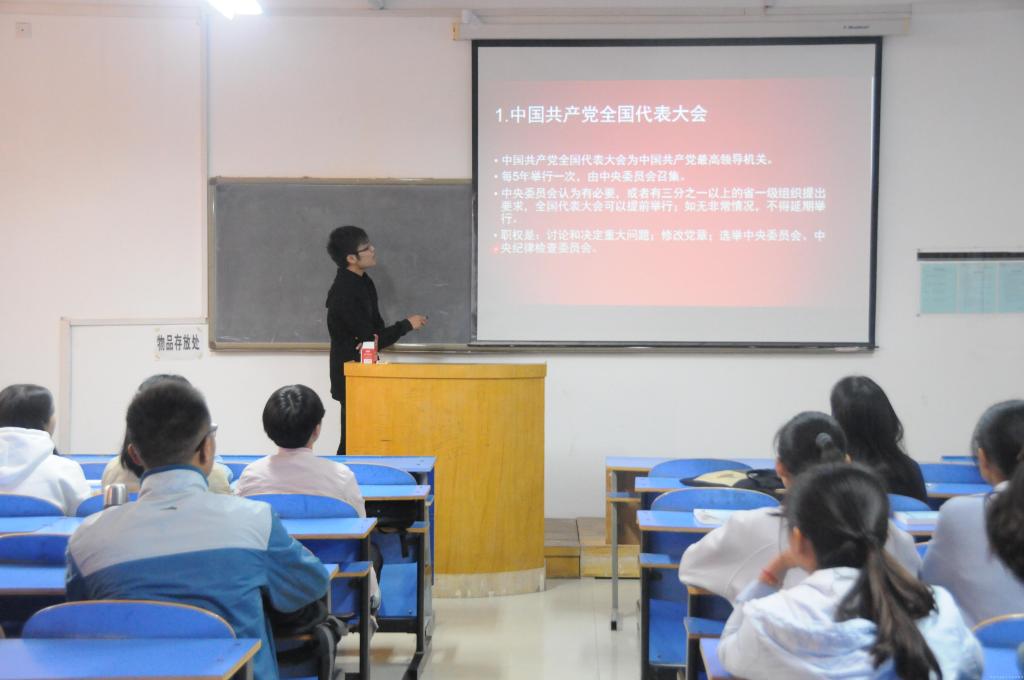 2017年10月18日晚七点,一场别开生面的十九大知识竞赛在A441举行。十九大知识竞赛内容分选择题、填空题和抢答题三个环节,题目范围为党章知识、习近平总书记系列重要讲话及治国理政新思想等学习内容。比赛中,各参赛队员以饱满的精神状态熟练应对,尤其是抢答题环节把现场气氛推向了高潮,展示了我院学生党员和团员对党章知识、习近平总书记系列重要讲话的全面掌握和深刻领悟,又充分体现了积极协作、勇于拼搏的团队精神。本次活动旨在通过以赛促学的形式,促使广大党员、团员重温党的辉煌历史、铭记党的光荣使命、关心党的发展建设,进一步激发党员、团员与祖国同频共振的庄严感与使命感,以更踏实的工作和更优异的成绩庆祝党的十九大召开。