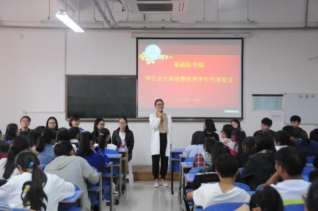 为让2017级新生充分了解大学生活,健康快乐的度过大学时光。9月29到30日,基础医学院相继开展了大学生入学系列教育相关内容,并分别邀请了校资助中心李志轩老师、大学生心理健康中心郭艳霞老师、校学生处学生管理科许学海老师、校团委副书记王晓蕊老师以及我院教学办副主任陈晓辉老师为新生进行资助政策解读、心理健康教育指导、安全教育宣讲、大学生职业生涯规划教育以及预防医学专业人才培养计划解读等相关内容。