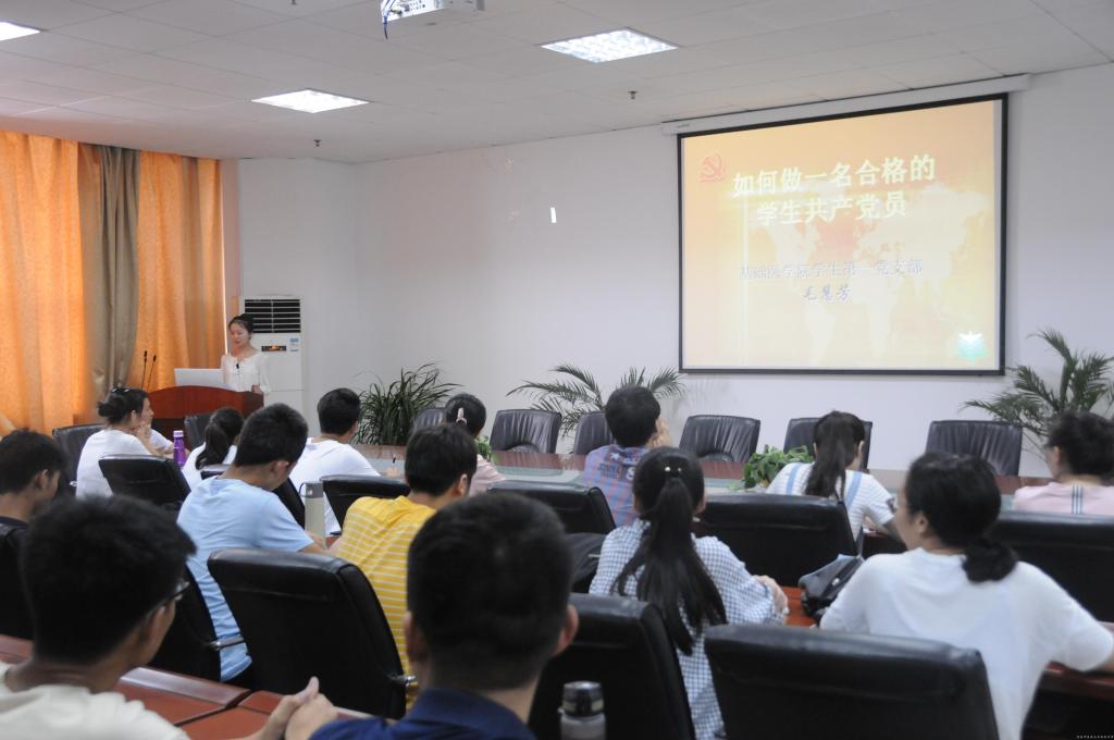 为使学生增强党的意识、责任意识和担当意识,进一步强化了学生党员的模范带头作用,深化“两学一做”内容,基础医学院本科生第二党支部于7月2日在基础医学院会议室进行了一场“如何成为一名合格的大学生党员”交流会,并特邀校优秀共产党员、校十佳党员,基础医学院2012级仲景班毛慧芳同学,为支部党员、入党积极分子分享体会。