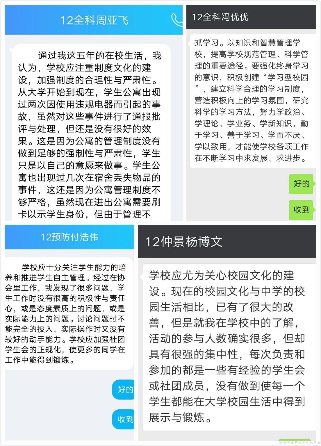 此次活动充分调动了学生们参与学校、学院的建设与发展的积极性和主动性,进一步增强了主人翁意识和对母校的感恩情怀,同时也给学校和学院提出了很多好的建议和意见,对营造健康、文明、和谐、有序的校园环境有重要意义。(基础医学院学工办)