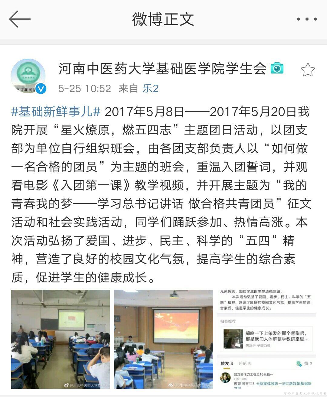 本次系列团日活动不仅弘扬了爱国、进步、民主、科学的“五四”精神,营造了良好的校园文化气氛,而且进一步提高了我院学生的思想素质,促进我院学生健康成长。(基础医学院分团委刘旭初)