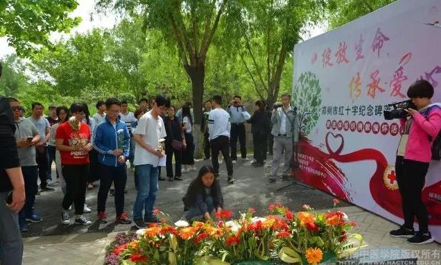 2017年5月5日,在5.8世界红十字日来临之际,基础医学院志愿者小分队二十名成员在校解剖实验室主任陈四清副教授的带领下,参加郑州市红十字会以“绽放生命传承爱心”为主题的遗体组织捐献缅怀活动。