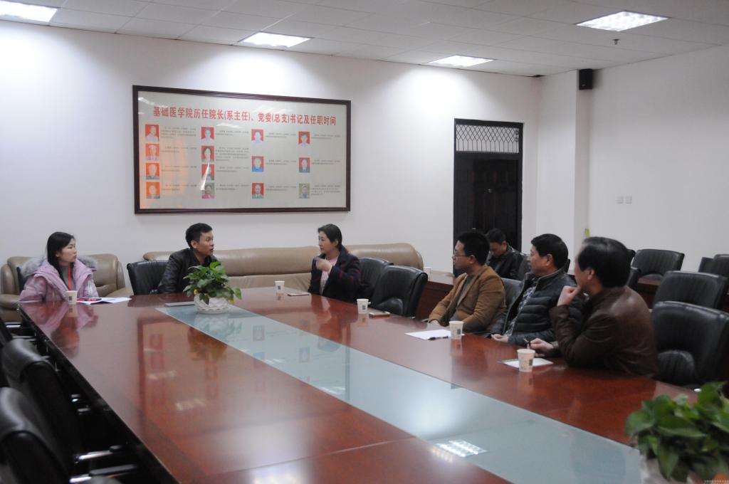3月3日,在学校举行大型招聘会期间,基础医学院与许昌仁和骨科医院、驻马店市第二中医院、渑池县人民医院、镇平县中医院、沈丘县中医院、卢氏县中医院、洛宁县中医院七家就业基地负责人在基础医学院会议室进行了座谈。基础医学院学工办主任徐里、2017届毕业生辅导员刘旭初老师及部分毕业生代表参加座谈会。