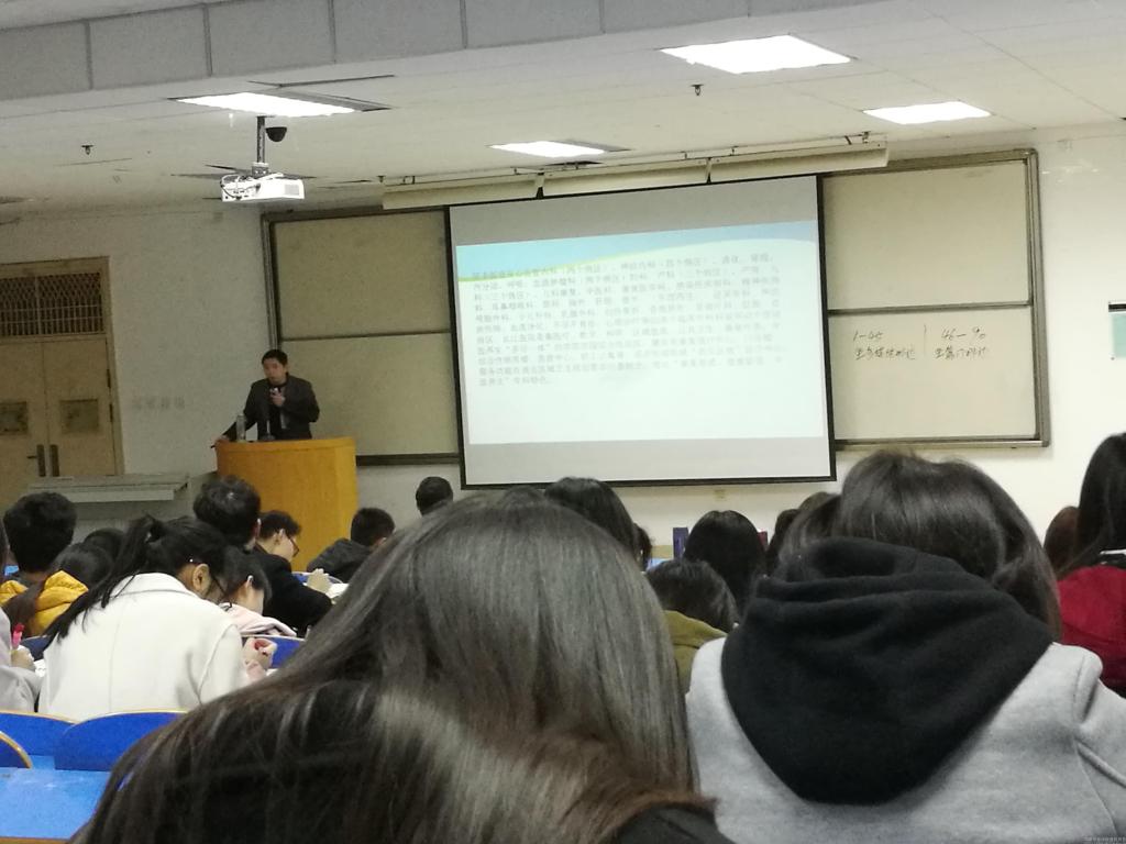 2017年3月2日晚,由基础医学院承办的“仲景讲坛”在新校区教学楼三楼阶梯教室举行,柘城县人民医院常务副院长刘运龙副教授应邀做客本次讲坛,做了题为“中医本科统编教材发展沿革”的学术讲座,我校仲景班学生及其他各专业学生二百余人到场聆听了讲座。