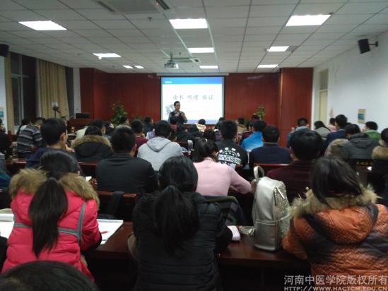 12月14日晚7点,基础医学院研究生论坛在新校区教学楼举行。孙鸿昌老师应邀做客论坛,并以“读书-明理-临证”为题作了学术讲座。基础医学院70余名研究生听取了本次讲座。