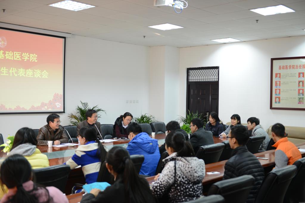 12月2日上午,基础医学院研究生代表座谈会在基础医学院4楼会议室召开。基础医学院高剑峰副院长、导师代表陈玉龙教授出席座谈会,围绕研究生同学提出的研究生科研规划、培养机制、专业课学习、就业择业等方面的问题作了说明。基础医学院20余名研究生代表参加了本次座谈,会议由基础医学院研工办主任程凯主持。