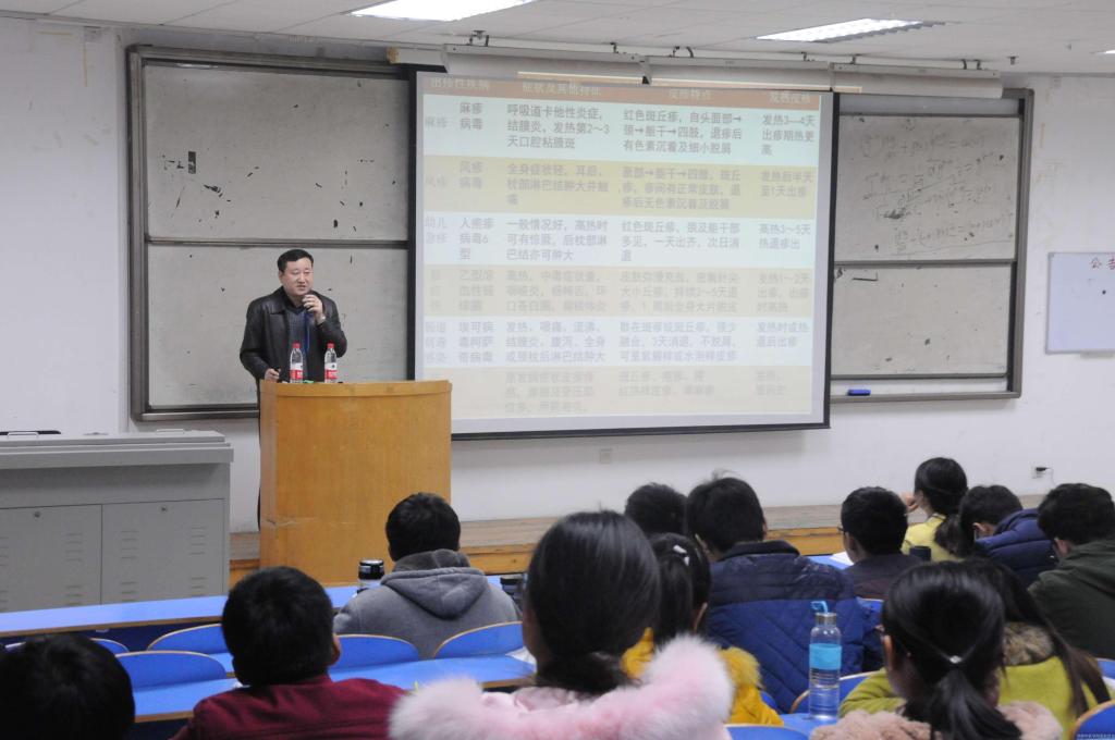 2016年11月29日晚,由基础医学院承办的“仲景讲坛”在新校区教学楼二楼阶梯教室举行,我校第二附属医院儿科专家陈团营副主任医师应邀做客本次讲坛,做了题为“小儿发热那些事”的学术讲座,我校仲景班学生及其他各专业学生二百余人到场聆听了讲座。