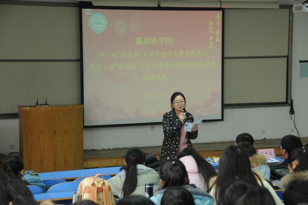 基础医学院举办第六届“创青春”大学生创业大赛表彰大会暨第七届“挑战杯”大学生课外学术科技作品竞赛启动仪式