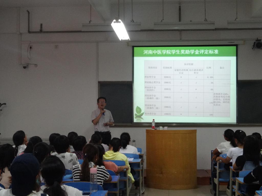 基础医学院院长詹向红教授作为2016级新生入学教育第一课主讲人,向新一届同学全面介绍了基础医学院的发展历程、人才培养的主导思想及培养成效,并对全体新同学提出了三点希望和要求:一是“追问本心,制定目标”;二是“笃实好学,创新思维”;三是“丰富内涵,提升能力”。她殷切希望全体同学尽快融入大学生活,把中医药这颗中华优秀传统文化的种子深深埋藏在心底,肩负起使命和责任,将来成为祖国建设的栋梁之材。随后基础医学院党委副书记朱平生教授、基础医学院辅导员戴冰星老师、校团委副书记王晓蕊老师、学生资助中心副主任李志轩老师、校团委孙河龙老师、新生班主任刘颖、王谨谨老师、河南省消防协会消防宣传服务中心刘雅楠警官、心理健康教育与咨询中心副主任郭彦霞等分别就理想信念、校规校纪及学科建设、职业生涯规划、高校资助政策、大学生课外科技学术创新、预防专业特色和培养方案、消防安全知识、心理健康等方面为新生进行了详细的宣讲。