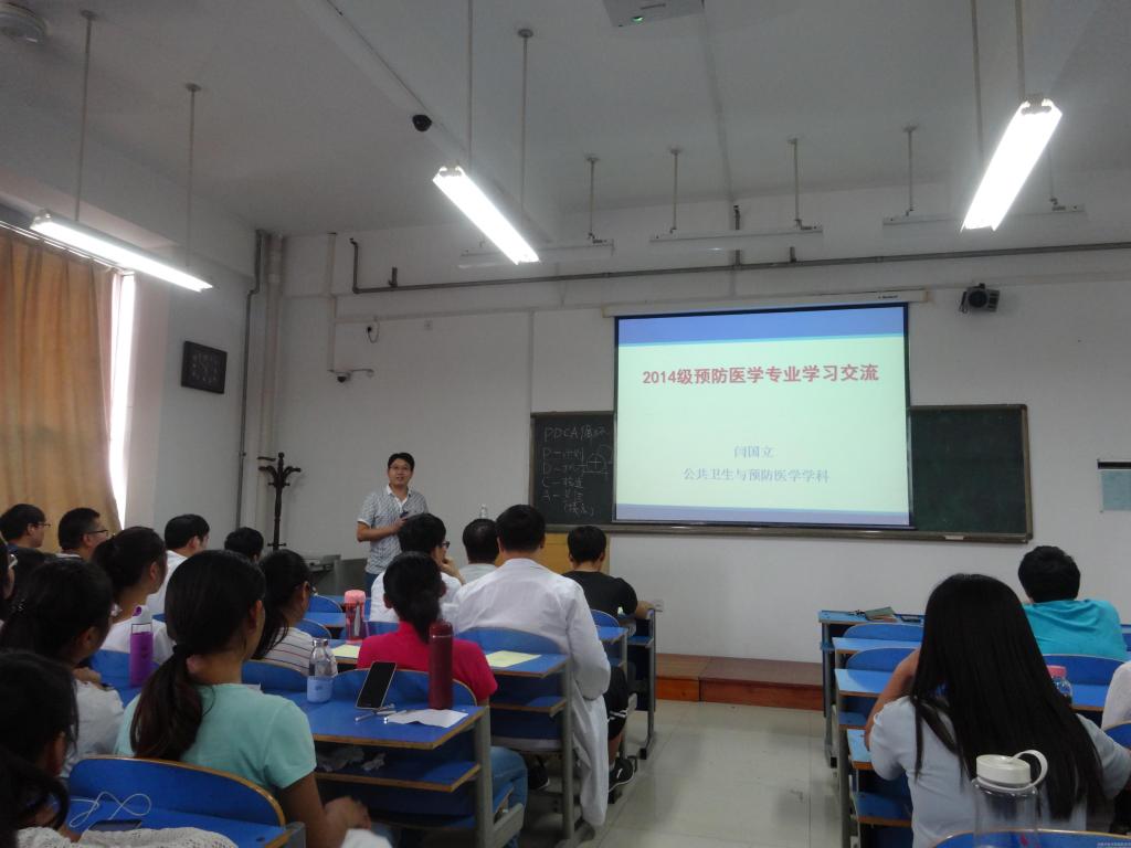 讲座中,闫国立老师从“预防专业学什么”、“预防专业怎么学”、“预防专业考研方向”、“预防医学就业形势”四个问题入手,为同学们全面、细致的讲解了预防学科未来的规划及发展前景。随后,结合今年二月份国务院印发颁布的《中医药发展战略规划纲要》文件精神,闫老师希望同学们要发挥中医院校特色,加强专业核心课程学习,注重自身创新精神和实践能力的培养,努力成为一名品德、能力、知识、身体、心理全面发展的综合素质型人才。此外,针对同学们所提出的问题,闫老师就专业培养计划、学习方法技巧、科研能力培养等方面进行了耐心解答。
