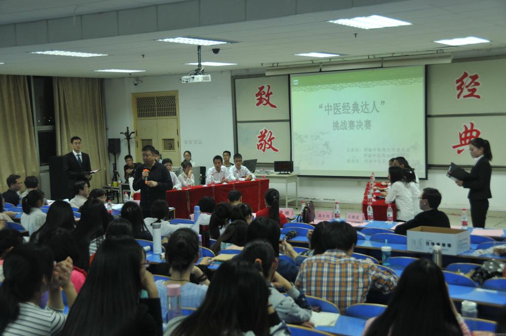 为进一步促进学风建设,增进中医学子对中医知识的积累和中医经典的传承,4月21日晚,由校团委和教务处主办,基础医学院承办的第七届大学生仲景文化节“中医经典达人”挑战赛决赛在教学楼四楼阶梯教室举行。教务处高天旭副处长、校团委王晓蕊副书记、基础医学院副院长曹珊、党委副书记朱平生、教学办、学工办相关教师作为观摩嘉宾莅临比赛现场。比赛评委由我校唐华伟副教授、谢忠礼副教授、程传浩副教授、孙鸿昌博士担任。