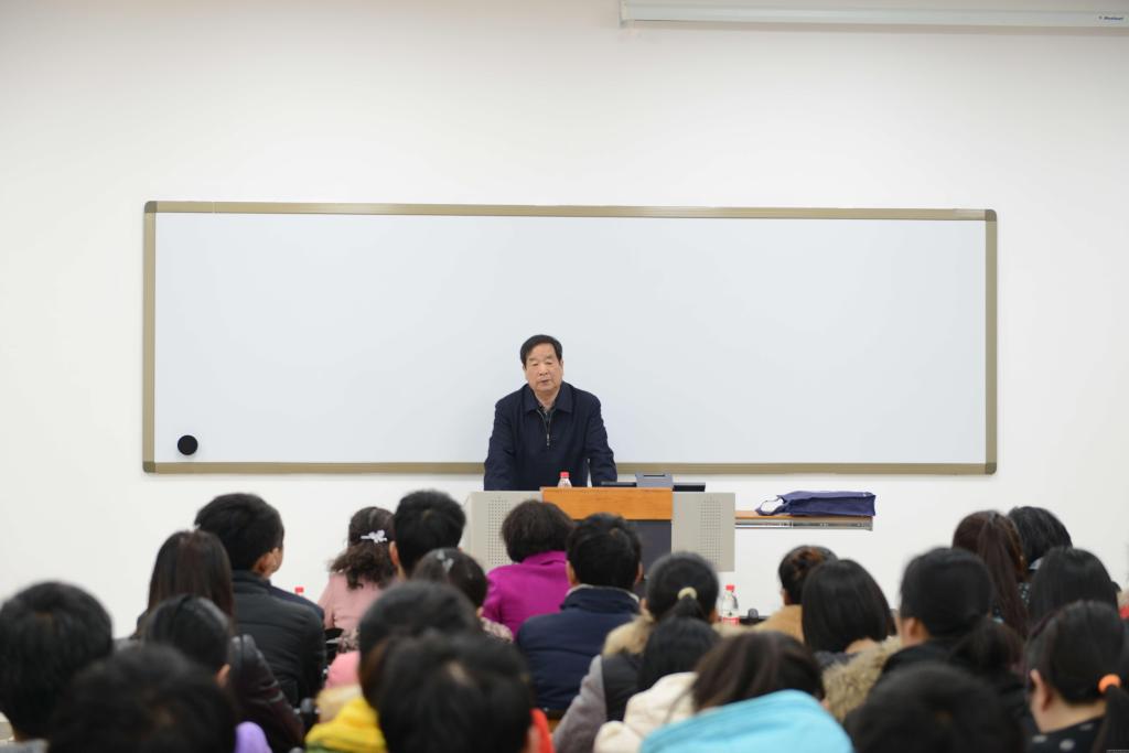 2016年3月2日,基础医学院医学史教研室退休教师王安邦教授应邀在我校新校区教学楼A105举办了题为“百年中医路”的学术讲座。我校郑玉玲校长、教务处张大伟处长,基础医学院党政领导、中医医史文献学科教师及仲景班学生到场聆听了讲座。