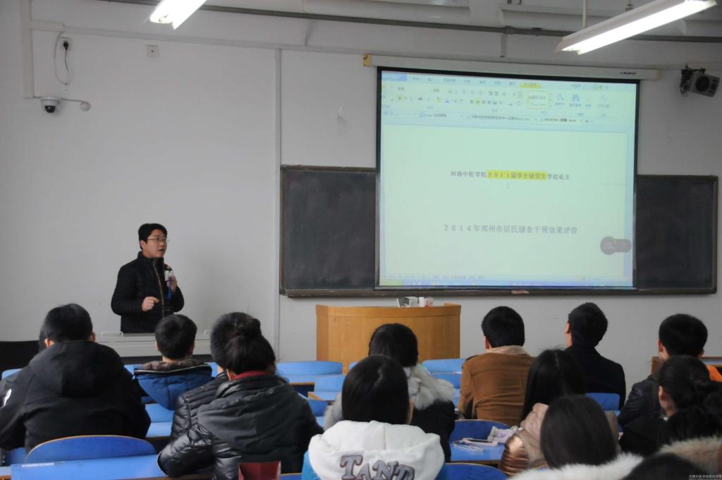 随后,预防学科带头人申杰教授结合预防专业的特点,从如何思考总结、科学技术创新等方面向同学们传授经验,申教授幽默风趣的话语让同学们受益匪浅。接着,预防学科主任闫国立副教授就预防专业毕业论文撰写格式、注意事项向学生进行了详细介绍,并结合实例给同学们进行认真辅导。最后,朱平生书记做实习动员总结,对实习纪律进行了强调,并建议同学们在实习中要多听、多看、多问、多动手,圆满完成实习任务。