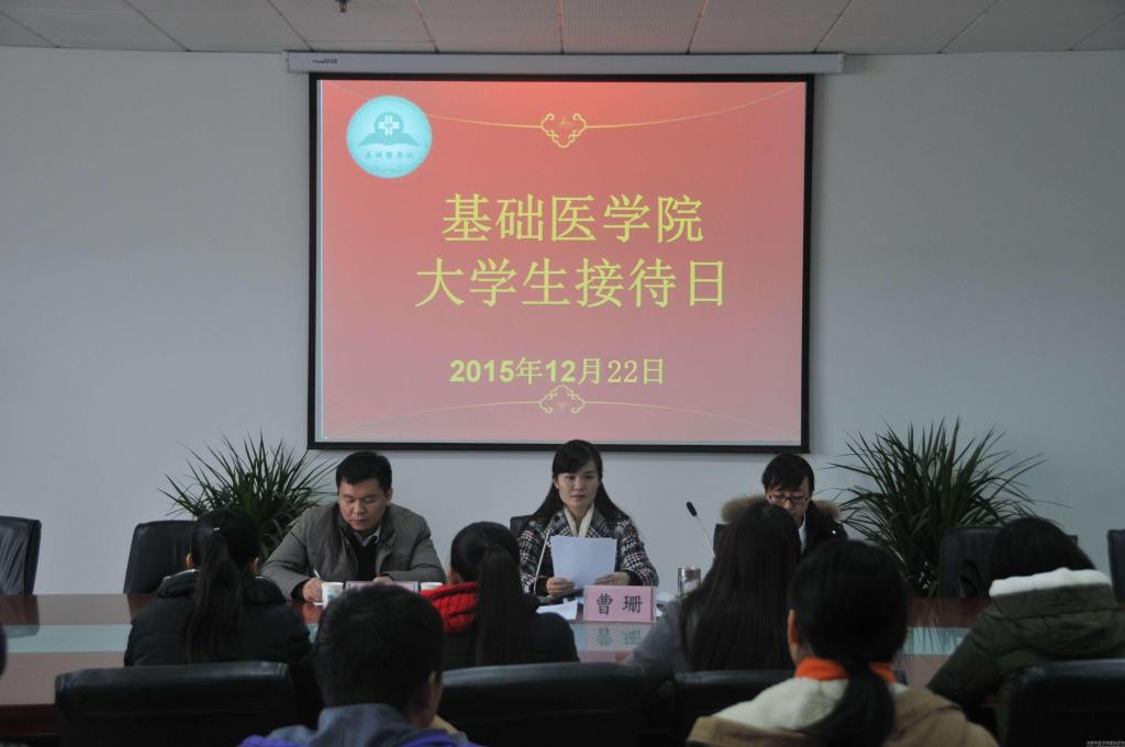 走进学生生活,倾听学子心声。12月22日中午,基础医学院在教学楼四楼会议室开展大学生接待日活动。基础医学院副院长曹珊、学工办主任徐里、辅导员李倩与20余名各年级学生代表见面交流。