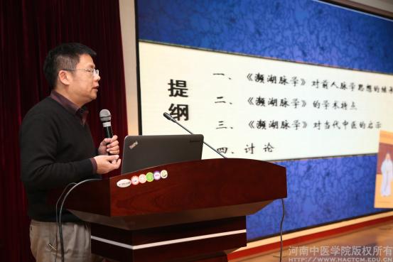 陈家旭教授首先介绍了《濒湖脉学》在中医脉学发展史的重要地位,然后结合自己多年的临床及教学经验,博采历代各家之长,对经义加以发挥,从《濒湖脉学》对前人脉学思想的继承、学术特点、对当代中医的启示等三方面详细而生动的剖析了《濒湖脉学》的学术思想内涵。他还强调“读经典,学经典,用经典”是中医人学习的方法和途径,并提出研究生教育不应仅局限于所学专业,而应开阔思路、拓宽视野。