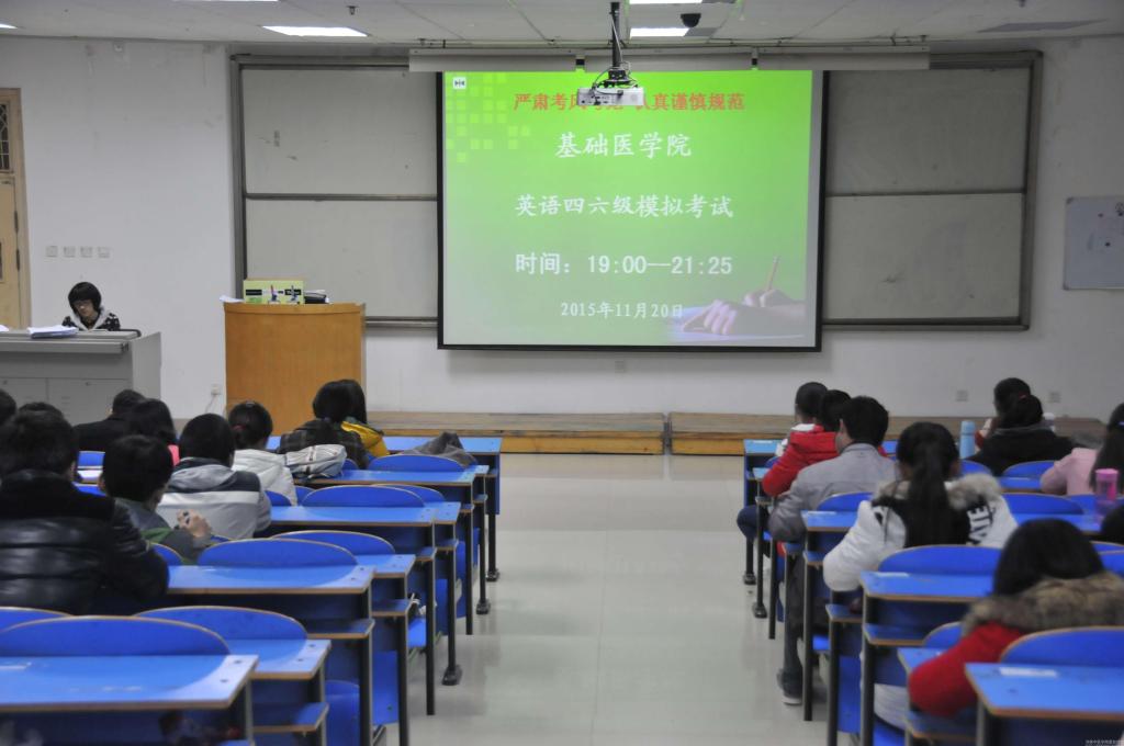 为增加我院同学对英语四六级考试规则的认识,提高同学们考试的解题技巧,缓解同学们在国家四六级英语考前的压力,以积极的心态面对考试,基础医学院于11月20日晚举办了英语四、六级模拟考试,基础医学院208名学生报名参加考试。