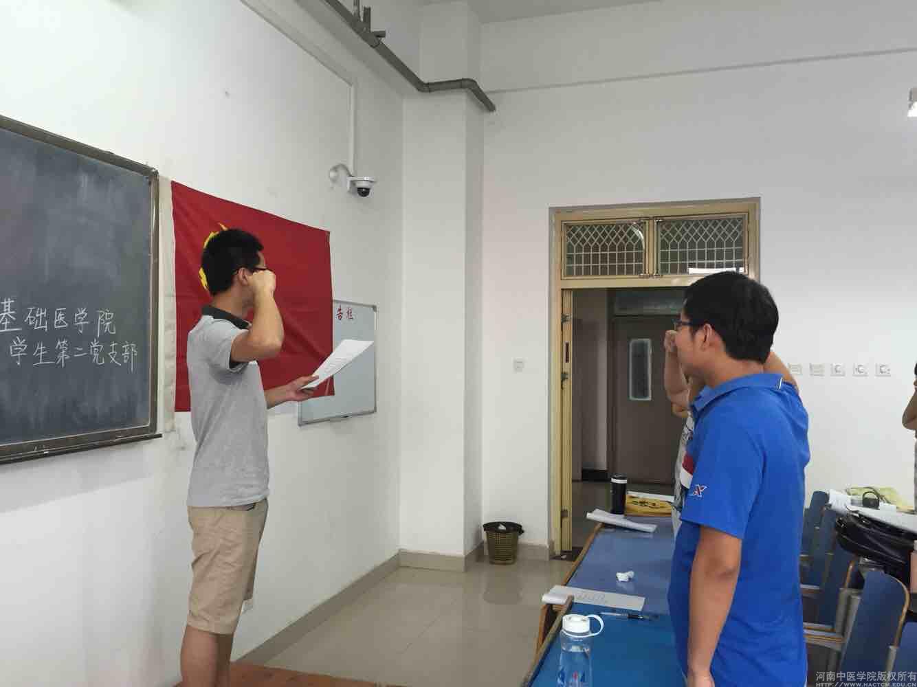 最后,全体毕业生党员在党员代表张志恒同学的带领下,重温入党誓词。(基础医学院学工办)
