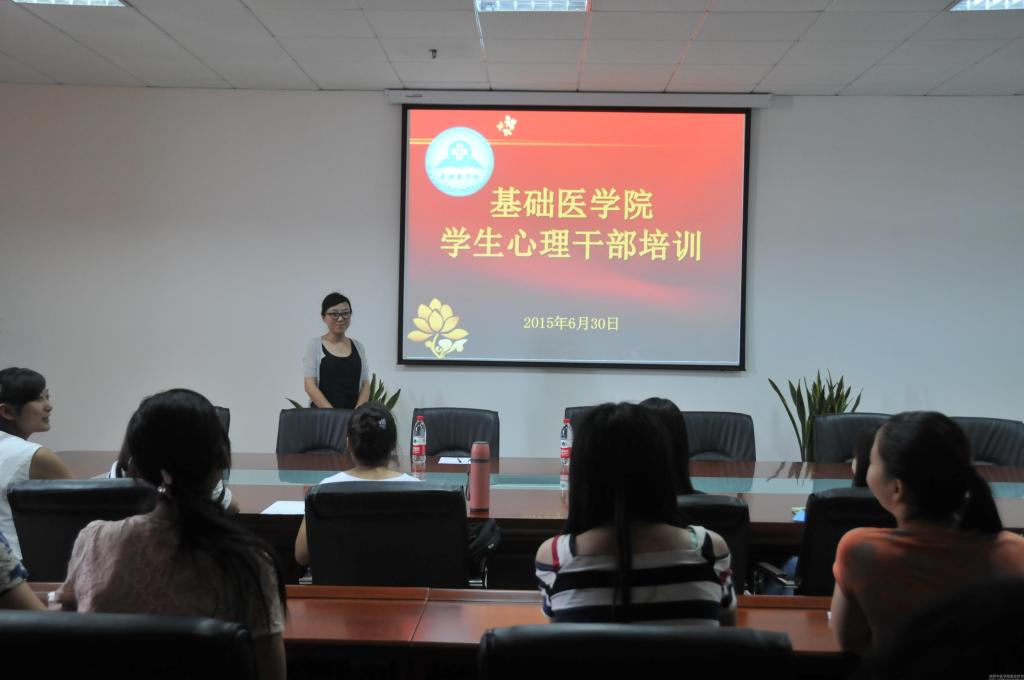 为提高心理委员和心理信息员的专业素质,完善大学生心理健康教育三级网络建设和常见心理问题的识别、辅导和转介,充分发挥学生朋辈辅导的作用,6月30日基础医学院在四楼会议室举行全院心理委员及心理信息员关于“大学生宿舍中的心理问题”主题培训活动。