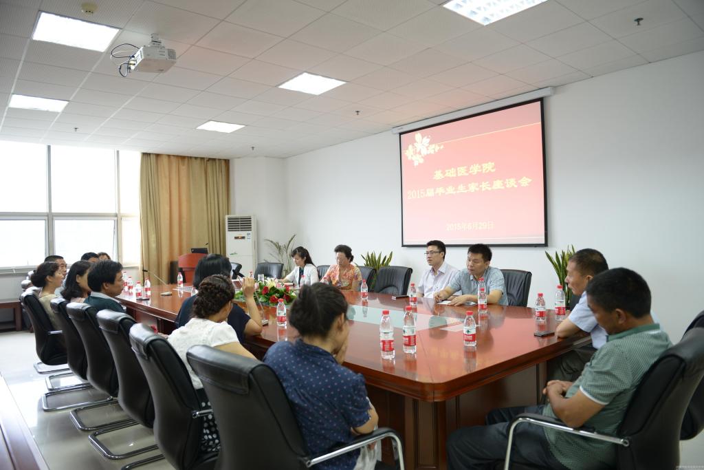 6月29日上午,基础医学院在教学楼四楼会议室召开了2015届毕业生家长代表座谈会。基础医学院院长詹向红、党委副书记朱平生、副院长高剑峰、曹珊,教学办、学工办老师及十余位毕业生家长代表参加。会议由党委副书记朱平生主持。
