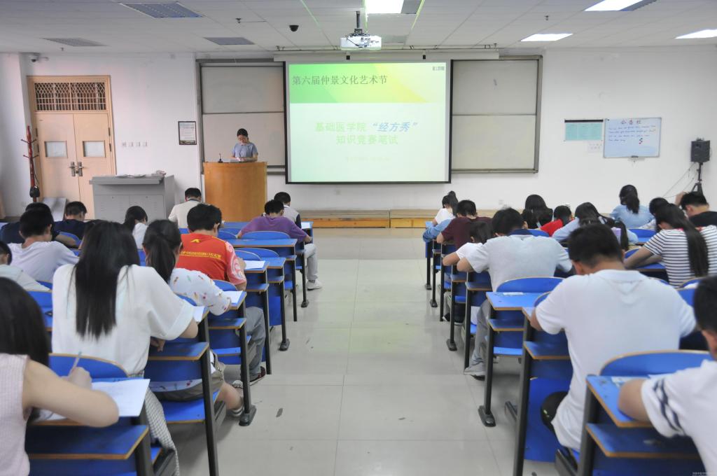 为响应学校第六届仲景文化艺术节活动,激发同学们对中医药文化的学习热情,展现我院育人成效,基础医学院积极开展“经方秀”知识竞赛,全院近200人参加比赛。