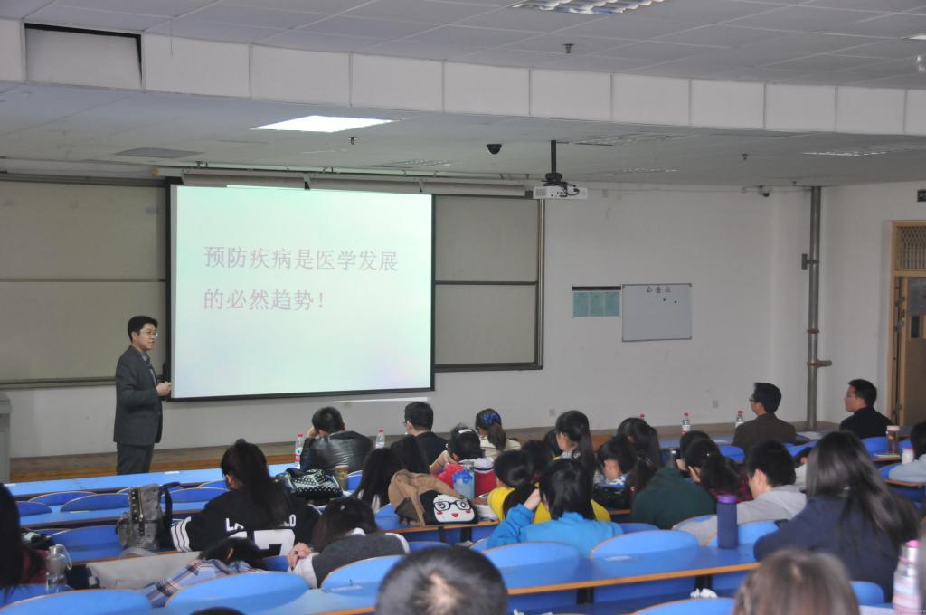 为了响应校团委团支部活力工程主题团日的号召,由基础医学院分团委主办,2013级预防班团支部承办的“Better health • better life”主题团日活动3月30日中午在三楼阶梯教室举行。校团委副书记王晓蕊,基础医学院党委副书记朱平生,预防学科主任、2013级预防班班主任闫国立副教授,中医临床基础学科孙鸿昌老师,基础医学院学工办全体老师、兄弟院系数十位团支书及基础医学院一百余名团员、团干参与此次活动。